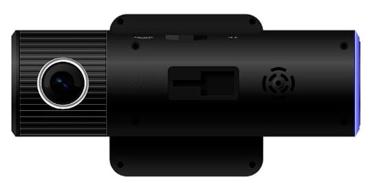 Пишет с двух камер одновременно. Встроенный GPS трекер, датчик удара (G-сенсор).